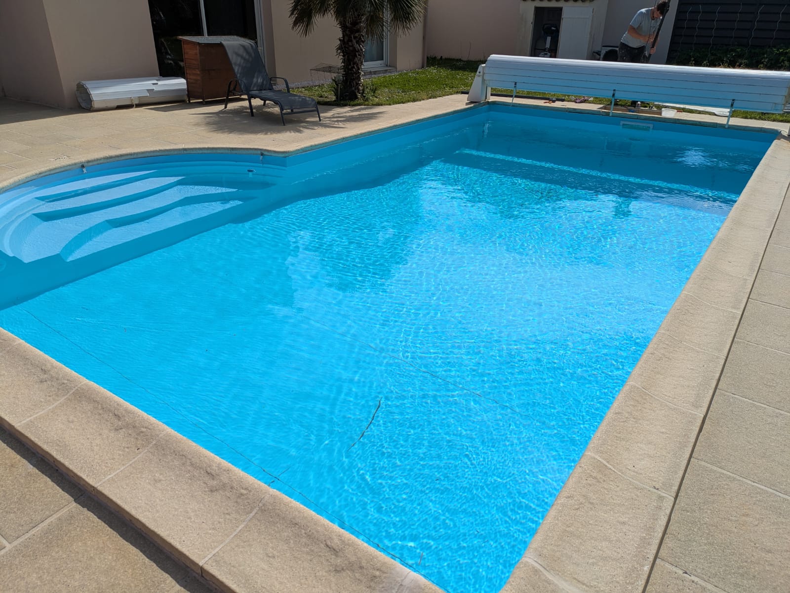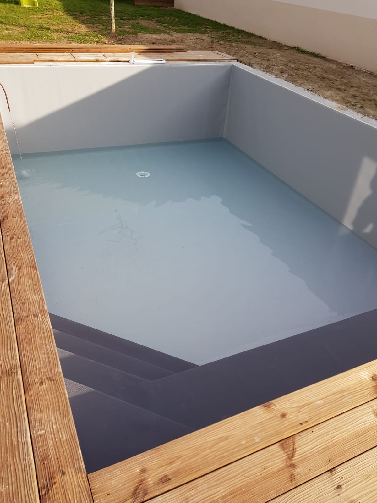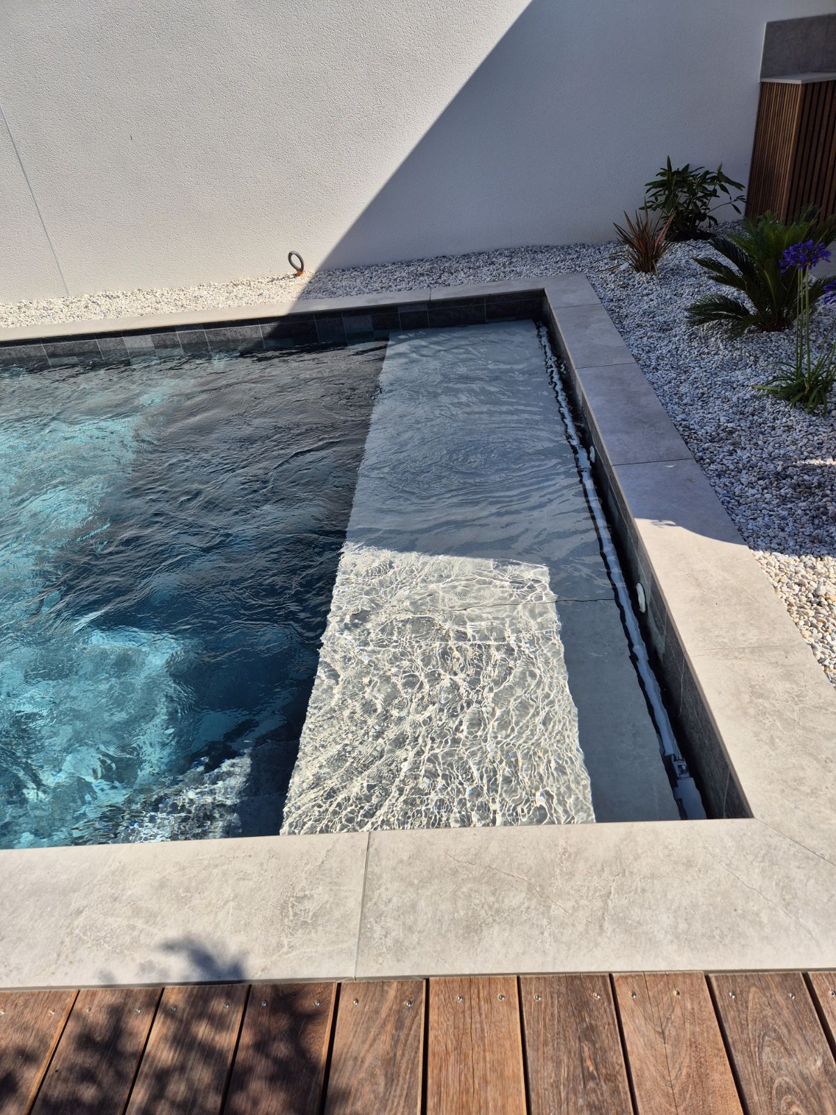 Mise en valeur de l’escalier par une couleur différente du reste du bassin