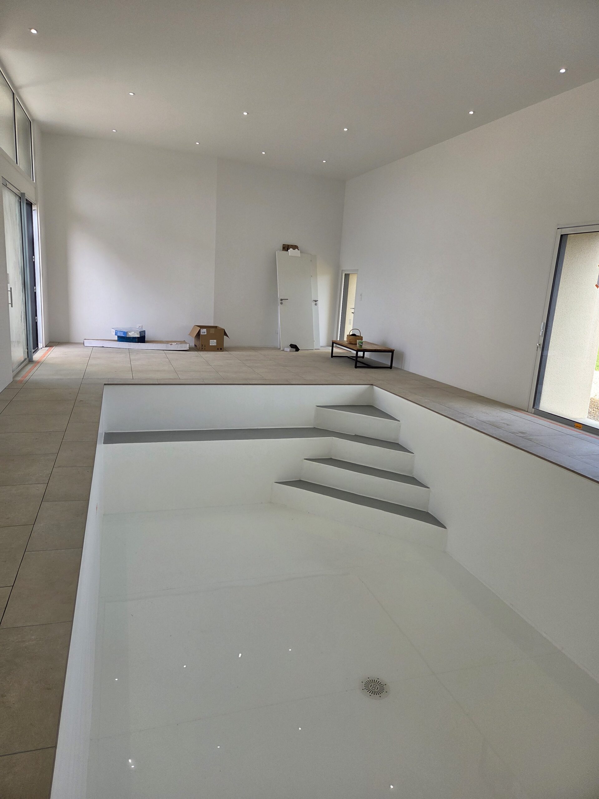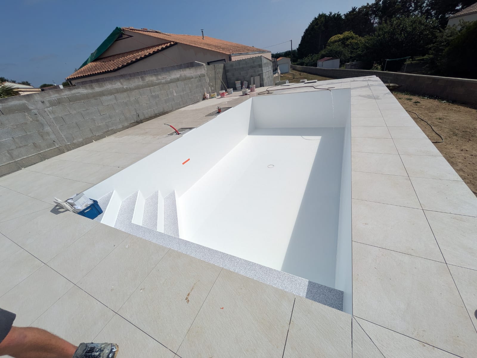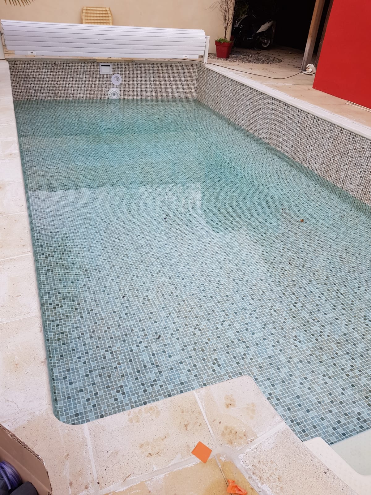 Mise en valeur de l’escalier par une couleur différente du reste du bassin